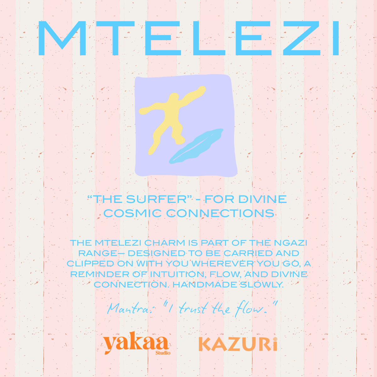 "NGAZI" means stairs. Ascend to intuition with the stairs charm, complemented by and MTELEZI (the surfer) for divine connections.