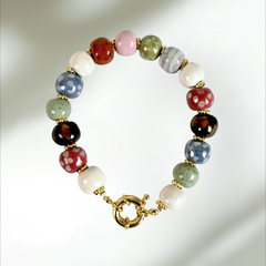 Each earring is hand-cast in recycled brass and plated in 18k gold. The ceramic insets are made using clay sourced near Mount Kenya and hand-painted by the women artisans of Kazuri — making every pair completely one of a kind.