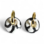 Distinct and expressive, the Lariette Earrings feature circular, patterned ceramic discs suspended from a polished gold hoop. Each piece is hand-painted by our artisans, giving it a one-of-a-kind character that celebrates African artistry and bold femininity.