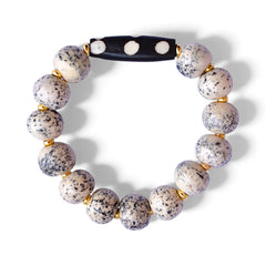 Lightweight but strong in design, the Mawe Earrings feature a sleek dotted bone bead paired with two small speckled clay accents — like stones worn smooth by river water.