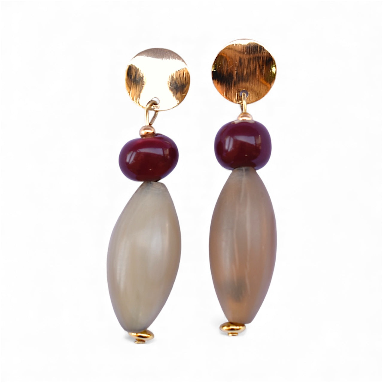 Lightweight, sculptural, and beautifully natural, the Moshi Earrings pair a smooth bone bead with a rich clay bead and a soft gold-plated finish.